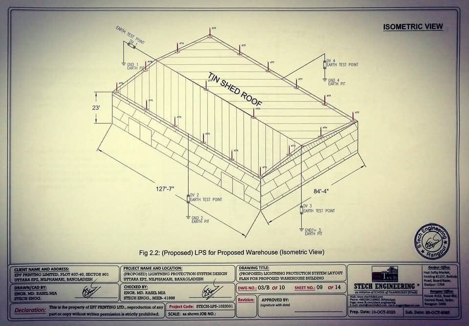 The project included the complete design of the Lightning Protection System and the generation of a compliant Earthing Test Report as per the client's needs.